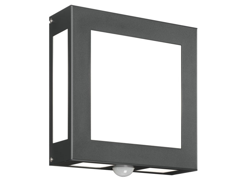 Die CMD Wandleuchte Modell 62/BM ist quadratisch, modern und bringt stilvolle Beleuchtung an jede Wand. Das Opalglas sorgt für angenehmes, gleichmäßiges Licht, während das anthrazitfarbene Gehäuse langlebig und wetterfest (IP44) ist. Mit integriertem Bewegungsmelder schaltet die Leuchte automatisch, sobald sich jemand nähert – perfekt für Eingangsbereiche, Terrassen oder Gärten.
